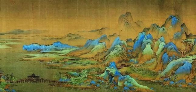 《千里江山图》《千里江山图》是中国十大传世名画之一,由王希孟18岁时所画,现藏于北京故宫博物院。