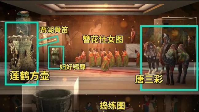 除了背景的画,还有多件国宝文物。