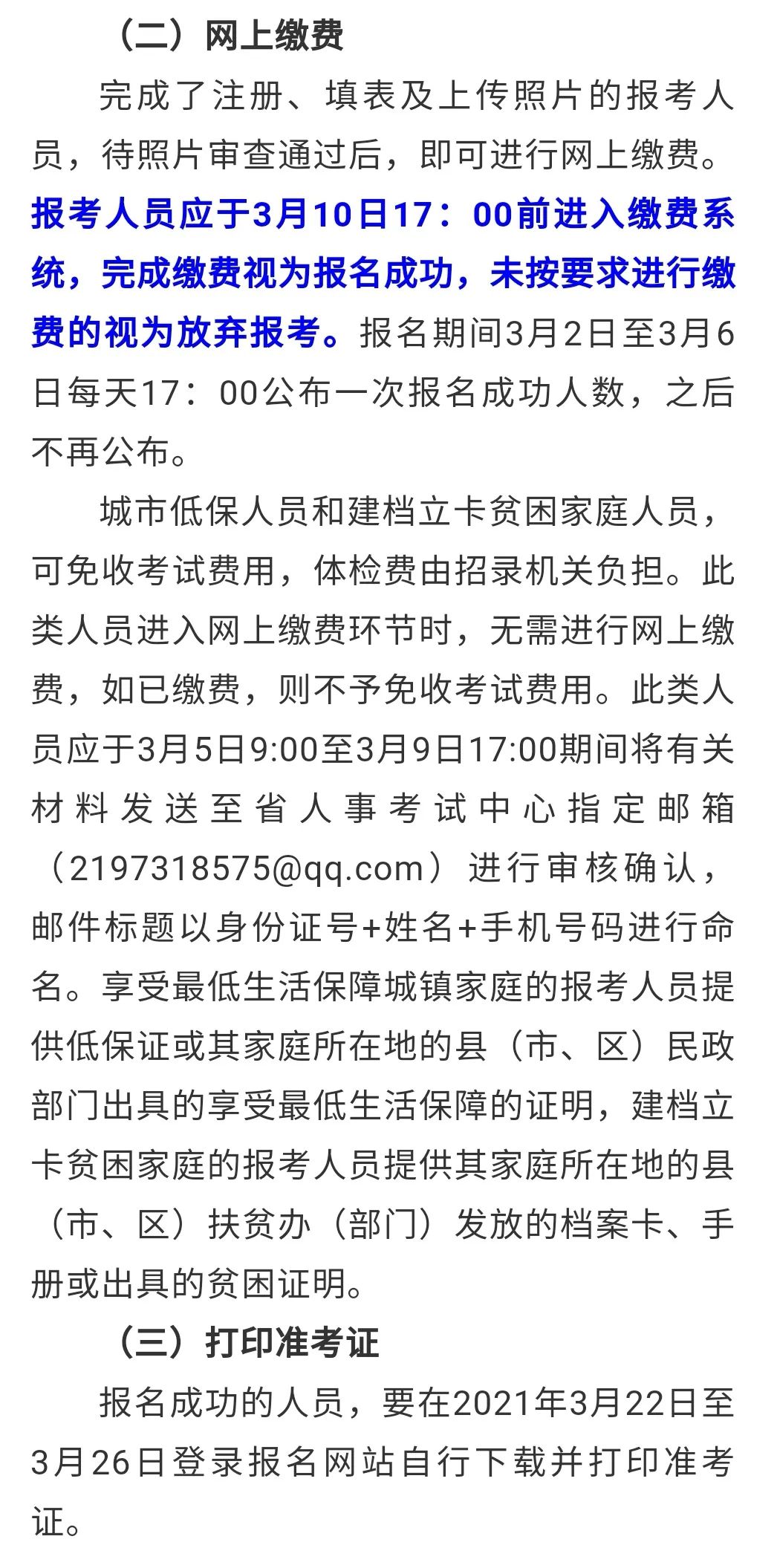 (二)网上缴费:3月1日9:00至3月10日17:00;