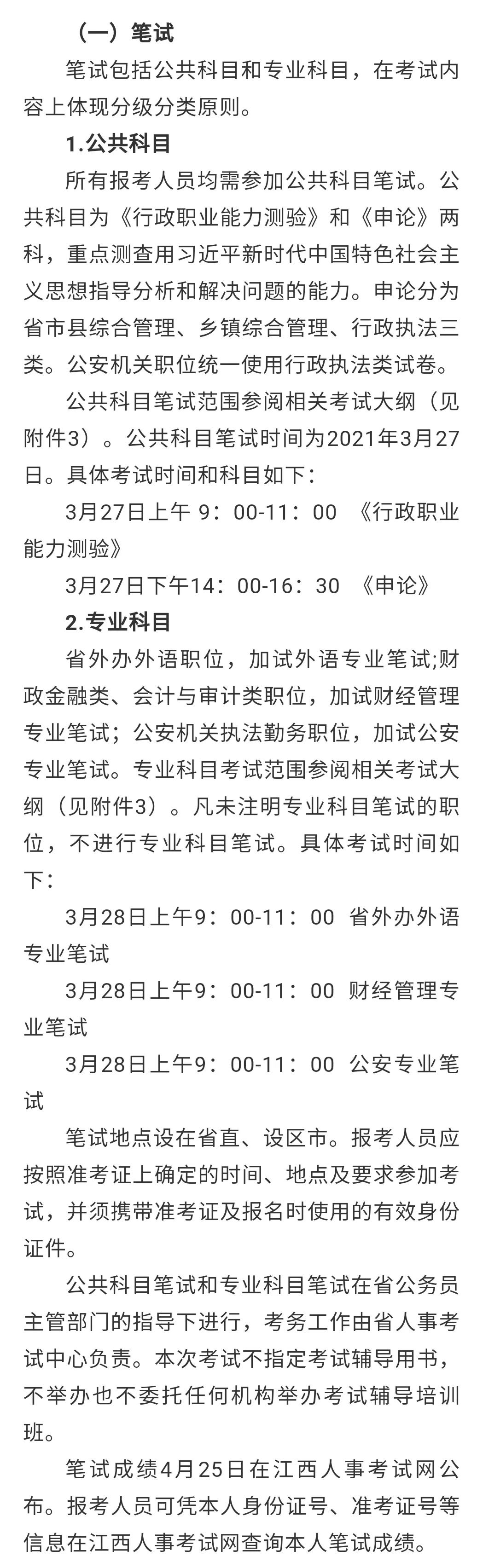 3.江西省2021年度考试录用公务员公共科目和专业科目考试大纲