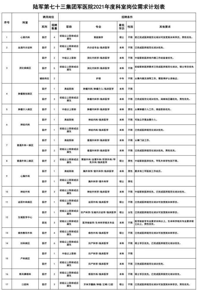 陆军第七十三集团军医院(原第174医院暨厦门大学附属成功医院)招聘199人