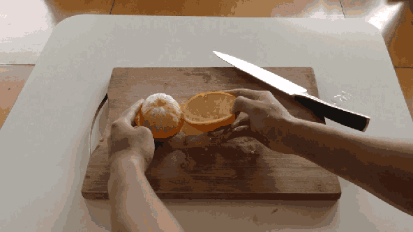 1、剥橙子前先滚一滚,然后从橙子中间横刀把皮切开,不要切到果肉。