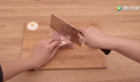 猪肉应该顺着肉的纹理切,刀和肉的纹理呈水平线,切出来的肉片,纹路呈“川”字状。