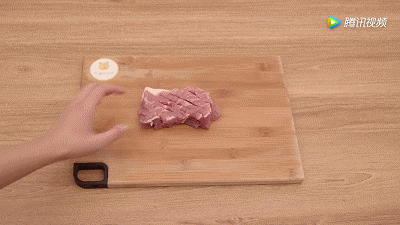3、再继续切,刀和肉呈90度,把肉切段后就变小肉丁啦。