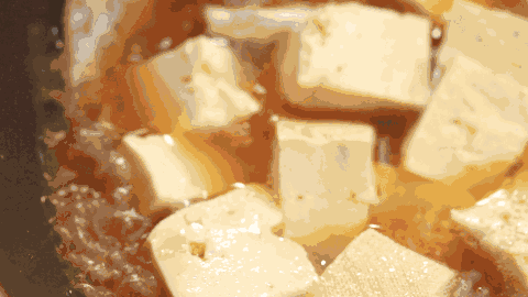 豆腐下锅前,先在开水中浸泡10多分钟,便可除去卤水味,这样做出的豆腐口感好,味美香甜。