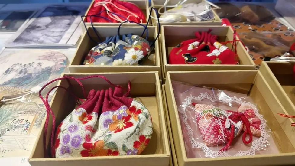 由各种药用植物制成的香囊“真定游礼·淘你喜欢”店长文婷婷说,我们正定现在很有名,她就想把正定各种文化都融合到一起,做一些比较精美的文创产品,来更好的发展我们正定的文旅产业,把家乡美、正定美更好的推广出去,吸引更多人来我们正定游玩。