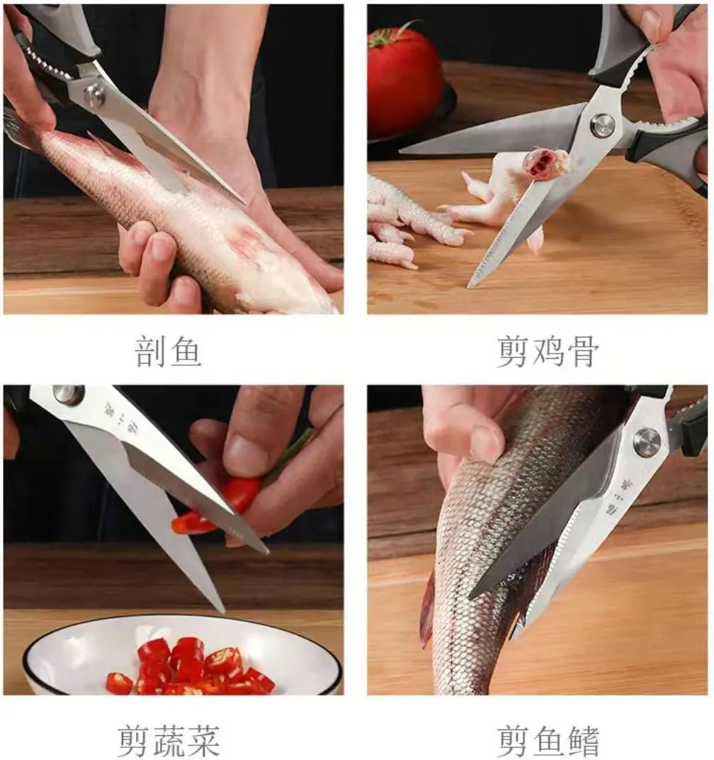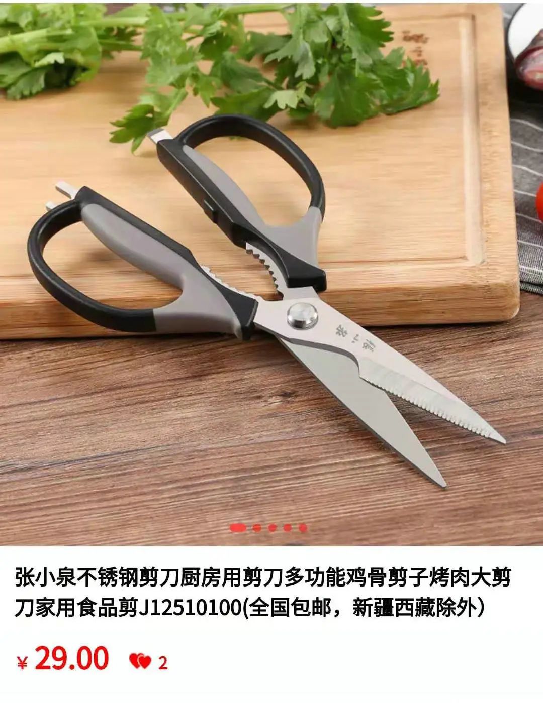 重百创客推荐这款张小泉不锈钢剪刀,采用优良不锈钢,锋利持久、不易生锈;加厚加长更易剪切厚实、体积大的食物,大槽口适宜剪鸡骨,可在厨房使用。