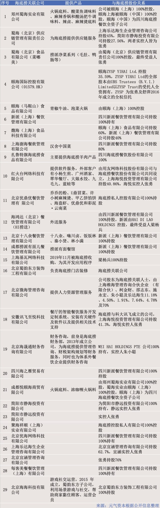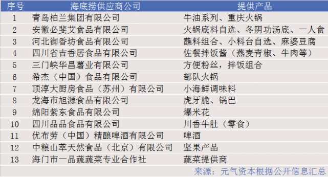 除了旗下子公司和关联公司,因火锅涉及的品类较多,围绕海底捞提供其他产品的供应商公司也为数不少。