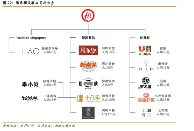 海底捞旗下子品牌(来源:西南证券研报)