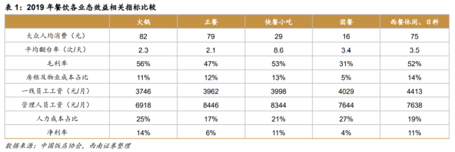 餐饮业态效益指标(来源:西南证券)