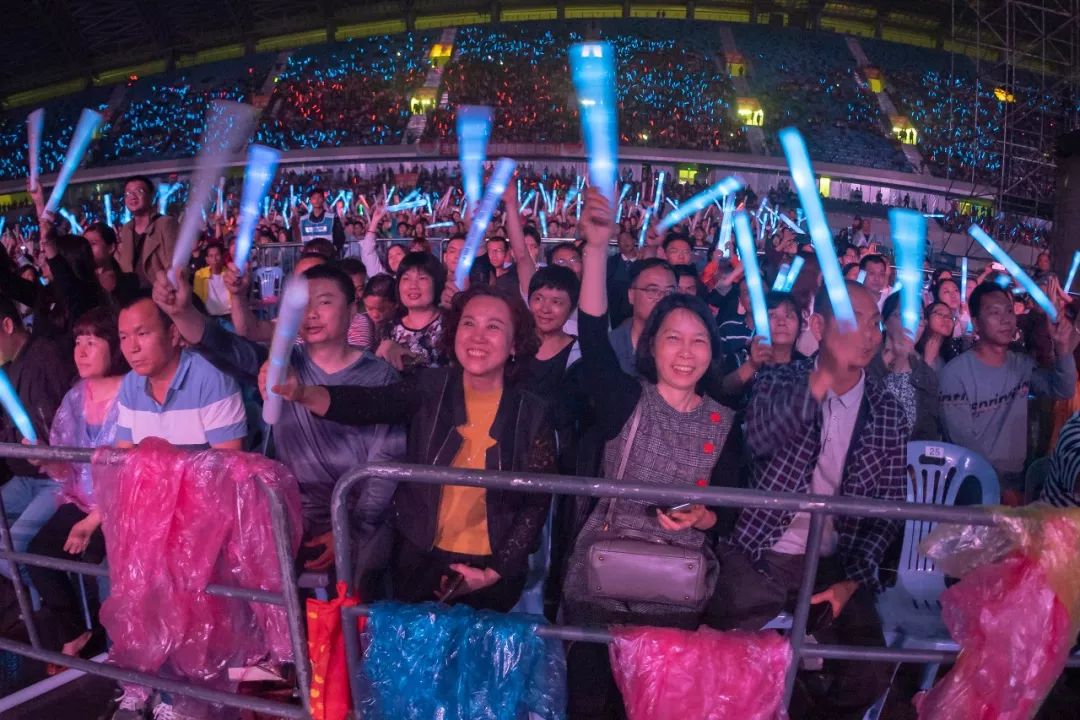 2019年4月,谭咏麟许冠杰在江门体育中心举办演唱会,观众热情高涨。周华东摄