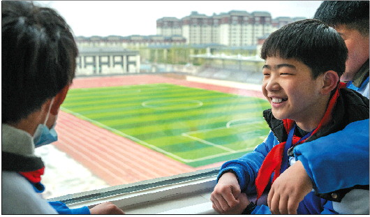 穿好校服,戴上红领巾,马文驰跟着妈妈下楼了。马文驰说,第一天去新学校,心里有些小激动。“我5点多就醒了,睡不着了。”马文驰说,从自己家的阳台就能看到学校的足球场,自己平时就爱踢足球。看着足球场心里就痒痒,“迫不及待要跟同学们踢场球了。”