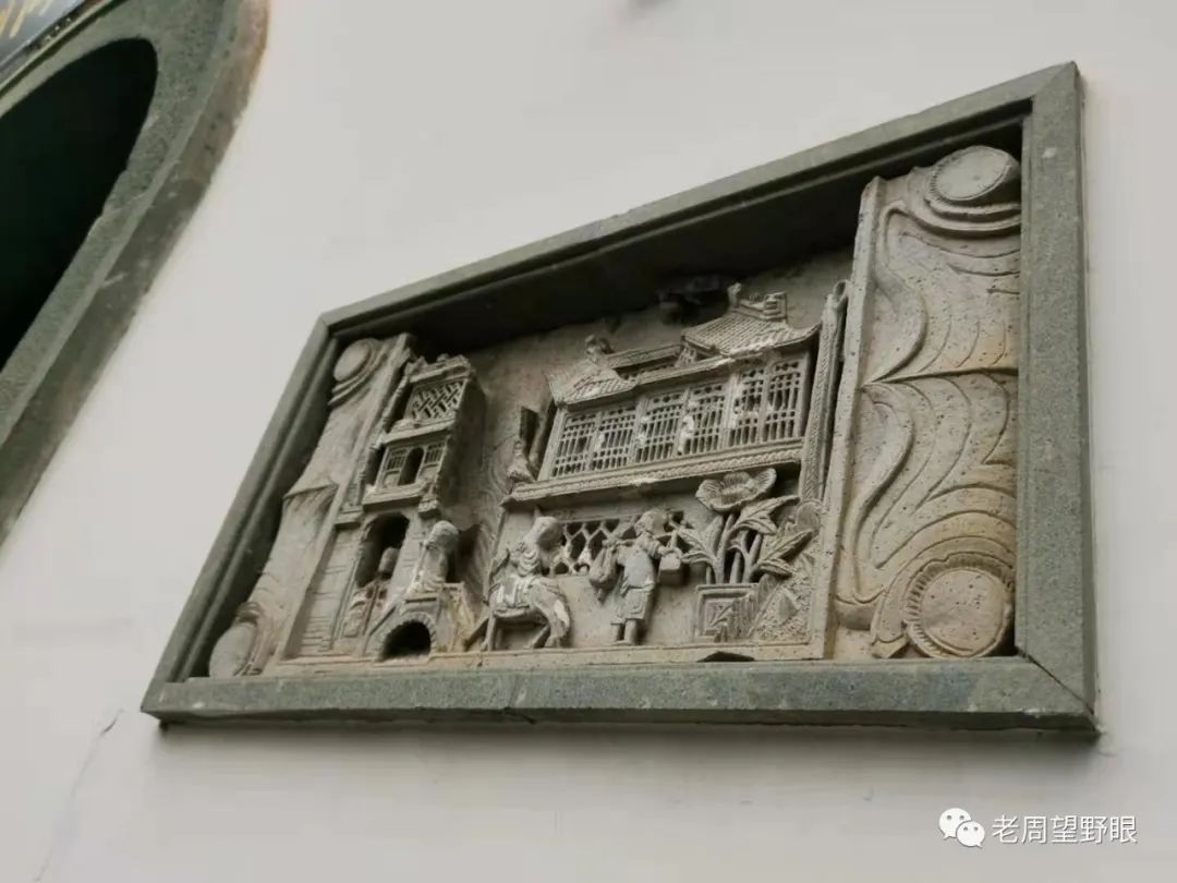 沪南钱业公所的石雕很有特色“风雨夜归人”