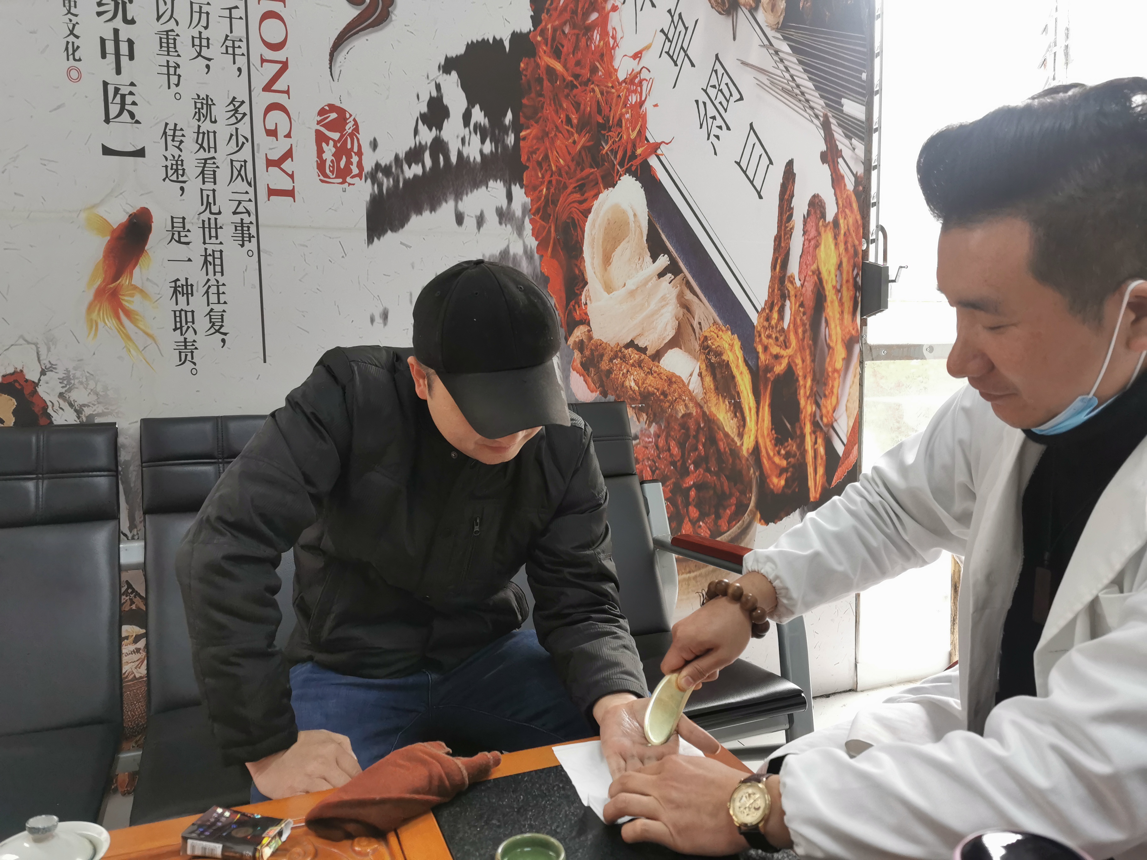 3月1日记者走进济生堂中医馆,碰巧遇见市民张先生,他笑着说道:“我这段时间湿气太重,身上刮痧过的地方现在青一块紫一块,看着还有点吓人,但是整个人都感觉精神好了许多。这要特别感谢济生堂中医馆的任智标医生。”当天,在济生堂中医馆记者看到任智标正在给一位患者进行手部刮痧。