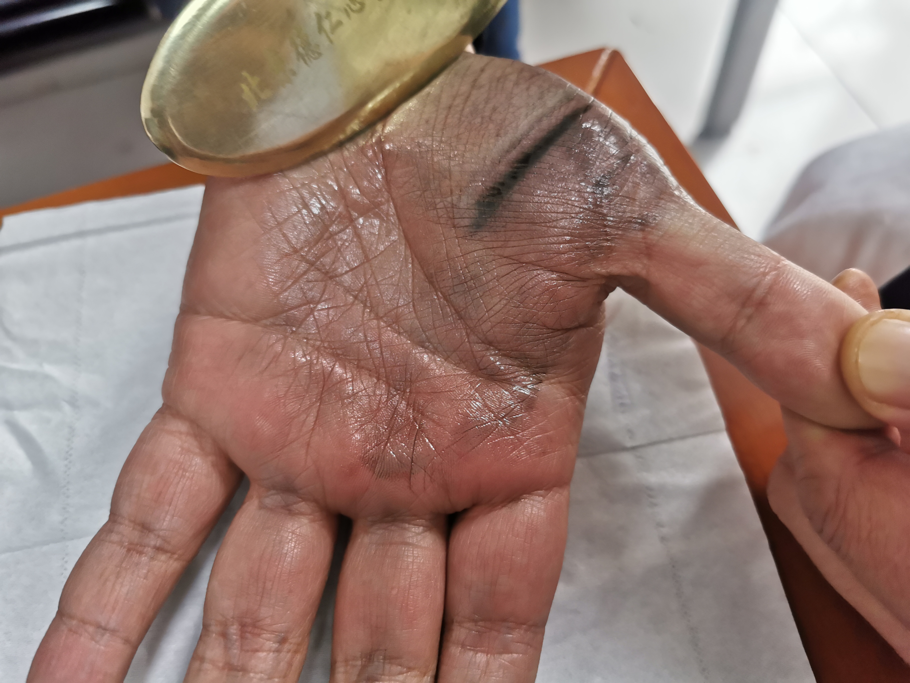 任智标正专心地为一位患者进行手部刮痧,不一会儿只见患者的手部出现了一些像墨水的液体。任智标一边细心地为患者继续刮痧,一边告诉患者:“平时不要熬夜,健康是第一位的。”患者看着自己手上溢出来的黑色液体,连声说道,熬夜伤身的道理他都懂,只是有时候总是一不小心便成了“夜猫子”今天亲眼看到自己的手上有那么多“毒素”,往后定要做到早睡早起。