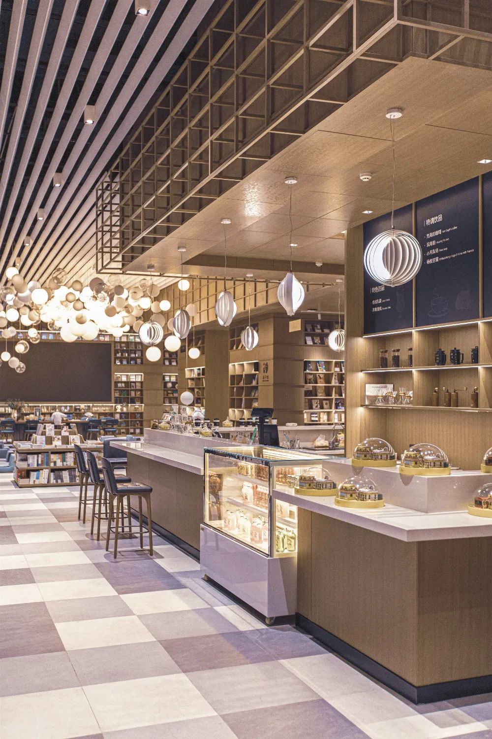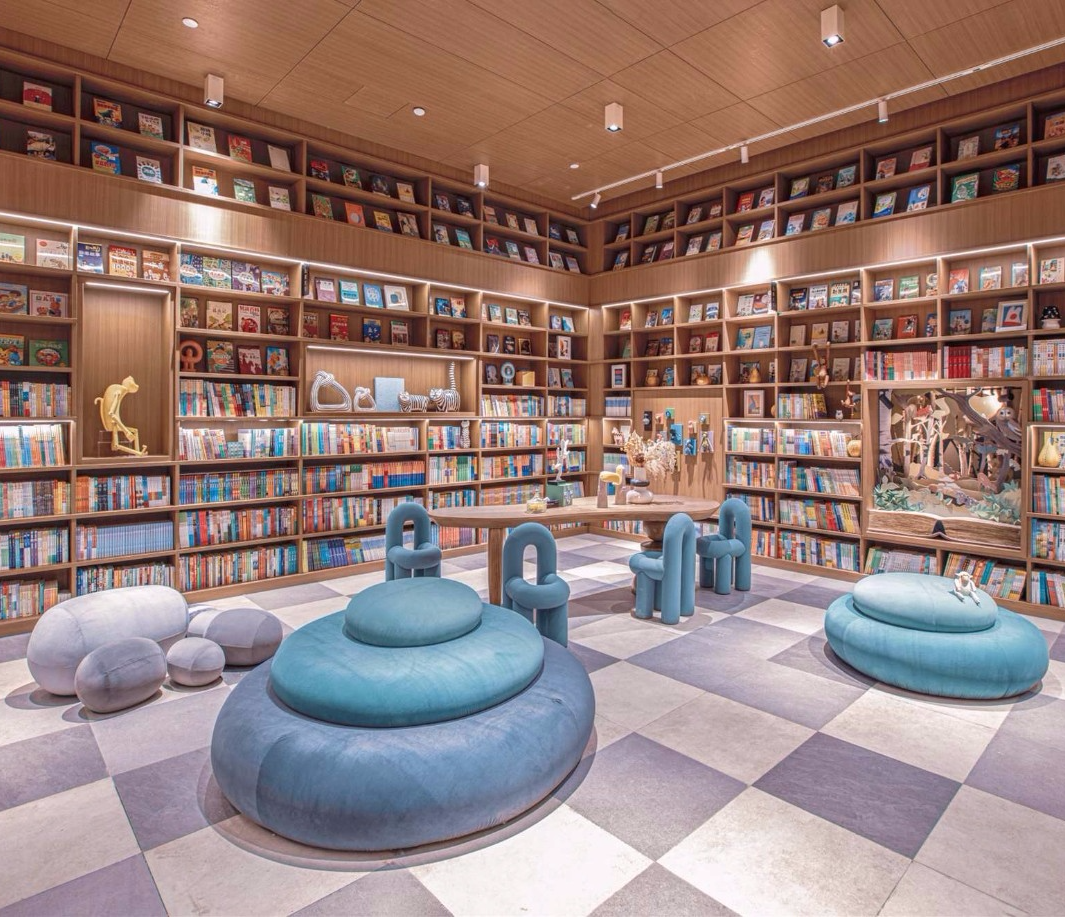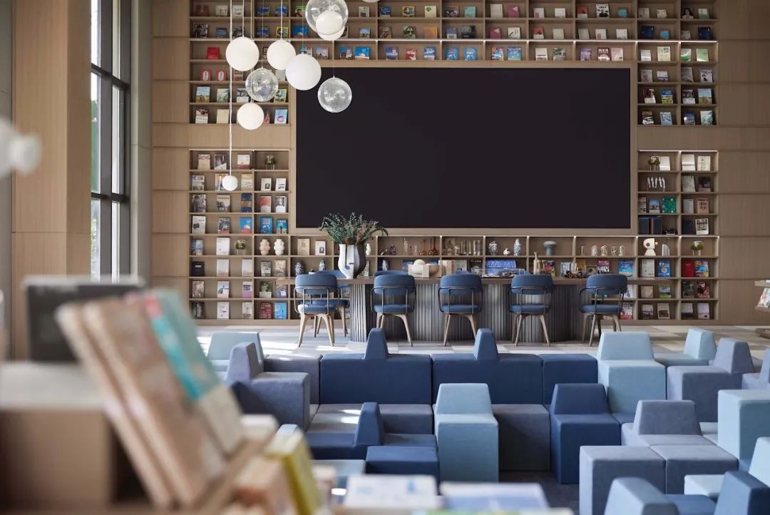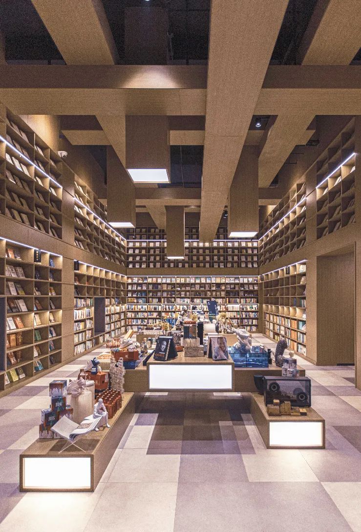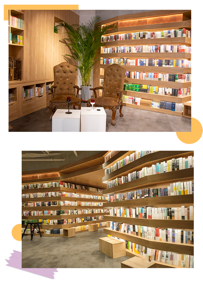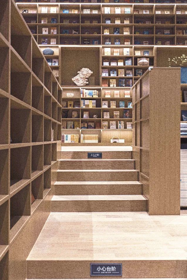 阶梯式动线动态布局、简约宽敞的阅读空间、大胆前卫的文字玻璃幕墙,极好地契合了文青的书墙梦想与品位追求,书香气息更加彰显。