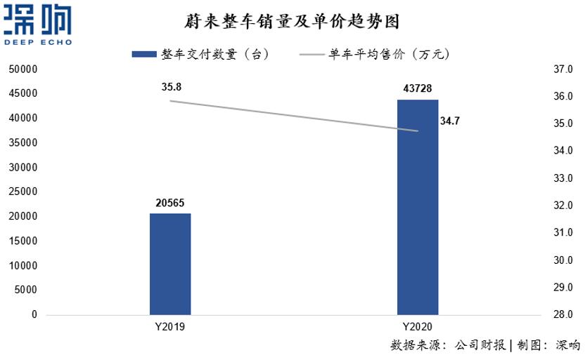 2.全年整车交付同比翻倍,单价基本持平。2020年整车交付43728量,同比增加了112.6%。而根据公司本季度财报披露,公司在2021年一季度整车交付数量将在20000-20500量之间,相当于同比增长421%-434%之间。