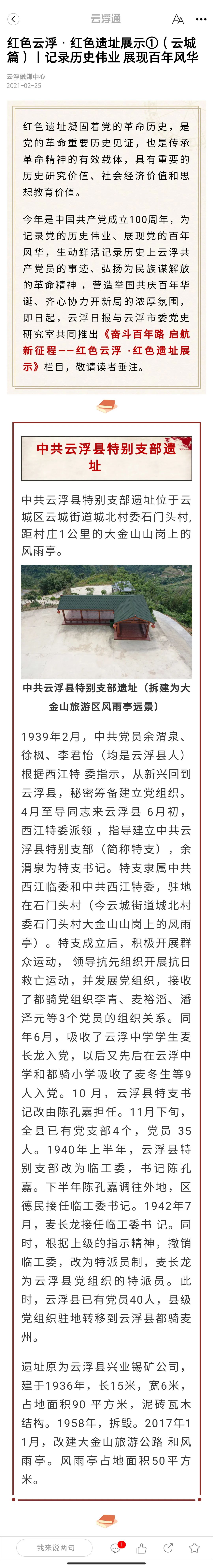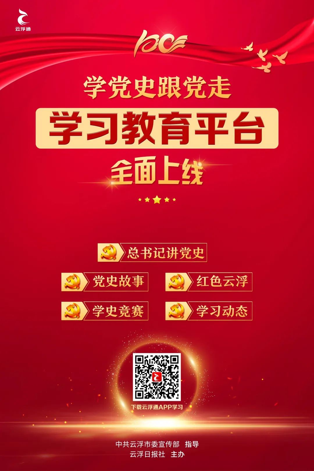 近日,中共中央印发《关于在全党开展党史学习教育的通知》,就党史学习教育作出部署安排。按照省委、市委党史学习教育动员会的精神,在中共云浮市委宣传部指导下,由云浮日报社主办的“学党史跟党走”党史学习教育平台2月26日在“云浮通”移动客户端上线。