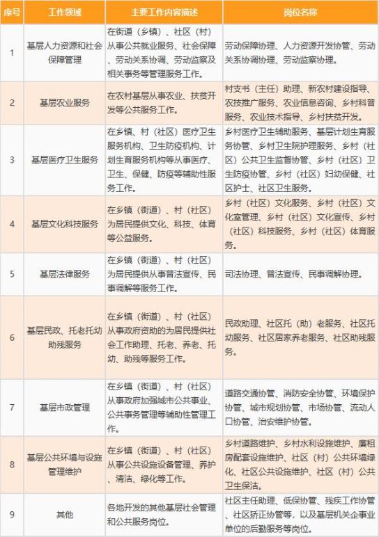 (三)基层社会管理和公共服务岗位目录