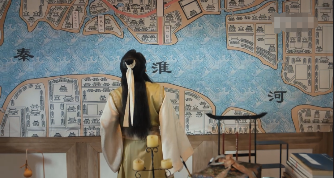 在一场宁毅与耿护卫讨论去哪玩的戏份中,赫然出现一幅超大的江宁地图,“秦淮河”穿图而过。或许观众们能通过淮河、江宁地图这些线索推断出,故事里的江宁城便是今天的南京城。