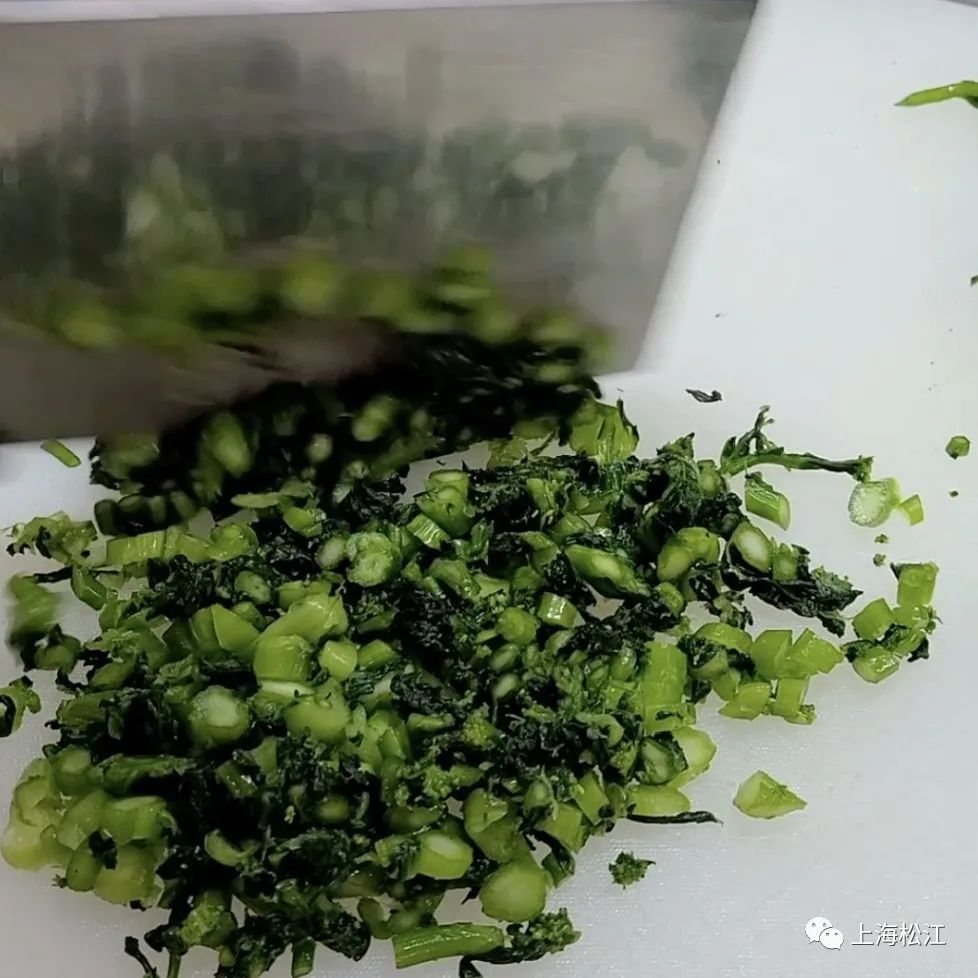 6. 暴捏菜挤干水分后切碎;