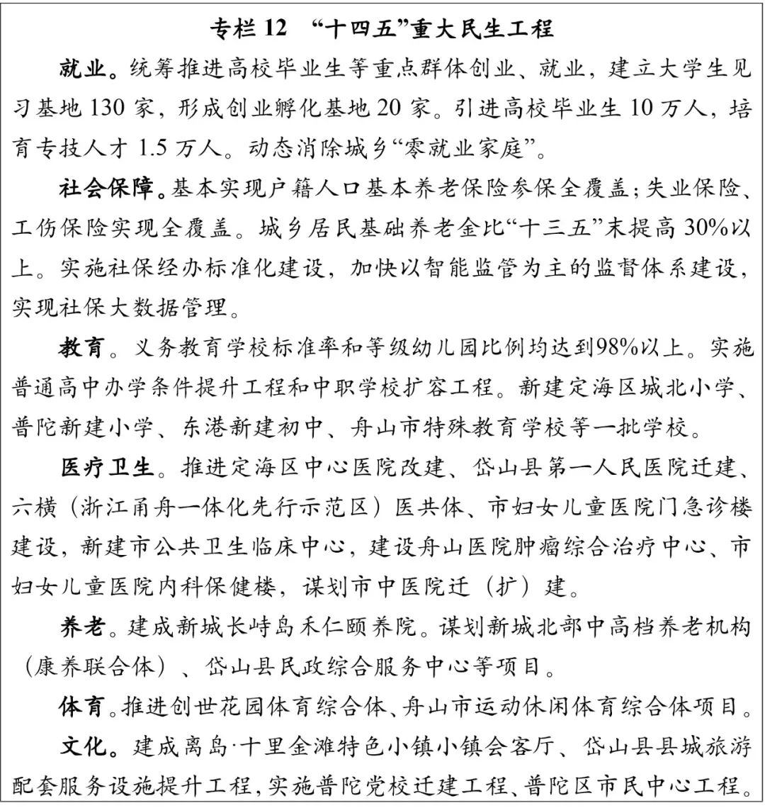 原标题:《舟山市国民经济和社会发展第十四个五年规划和二〇三五年远景目标纲要》