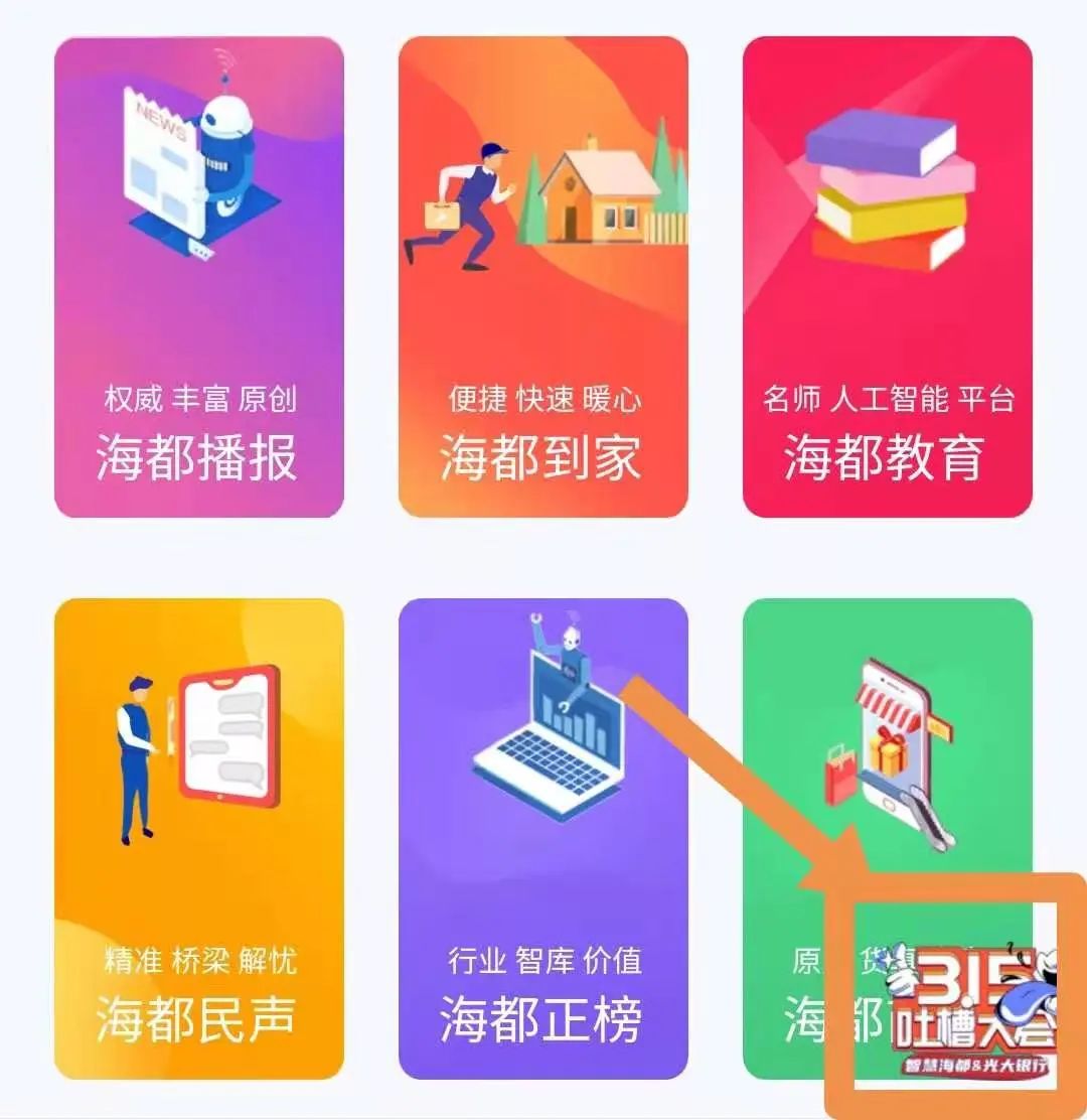 如果在消费中遇到了“糟心事”,特别是“老人消费维权”(保健品、旅游等)、“金融消费维权”(金融服务、保险等)、“网络消费维权”(快递服务、直播营销、网购、网络交友陷阱等)等领域的侵权,都可在智慧海都APP上进行反映!