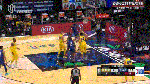 2021NBA全明星 精彩回顾要说全明星那就得玩起来,“小学生”库里玩梗可是一个顶!模仿詹姆斯“凡尔赛”不看框三分,相似度简直100%,致敬詹姆斯!