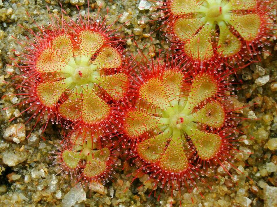 其次,食虫植物的捕猎效率并没有那么高,很多时候抓到猎物都是“凑巧”。不小心飞进家里的苍蝇倒是有可能会被捕蝇草夹住,或被茅膏菜粘住。但更多时候其实是捉不住的。对于食虫植物来说,捕食昆虫并不是那么性命攸关的事,因此它们不会像食肉动物那样想方设法地捕捉猎物,而是比较佛系,能捉到就吃,捉不到也没太大关系,反正饿不死。