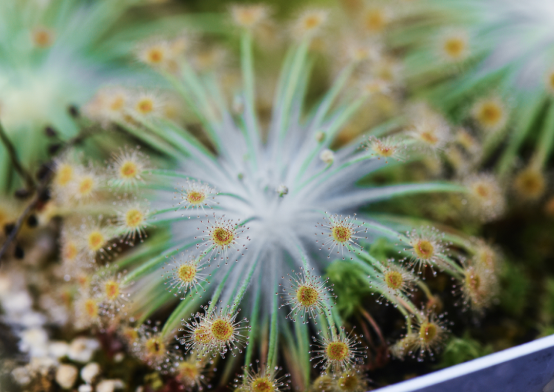 此外,食虫植物的种类非常多,生活在不同的环境中,擅长吃啥的都有。锦地罗、勺叶茅膏菜等这类食虫植物,叶片贴近地面,主要捕捉地面爬行的蚂蚁和蜘蛛;长叶茅膏菜、腺毛草等,它们的叶片伸向空中,主要捕捉飞行的昆虫;狸藻、貉藻等水生食虫植物,主要捕捉水里的猎物甚至一些杂质碎屑等;陆生狸藻、旋刺草等则主要捕捉泥土中非常细小的猎物甚至单细胞原生动物。