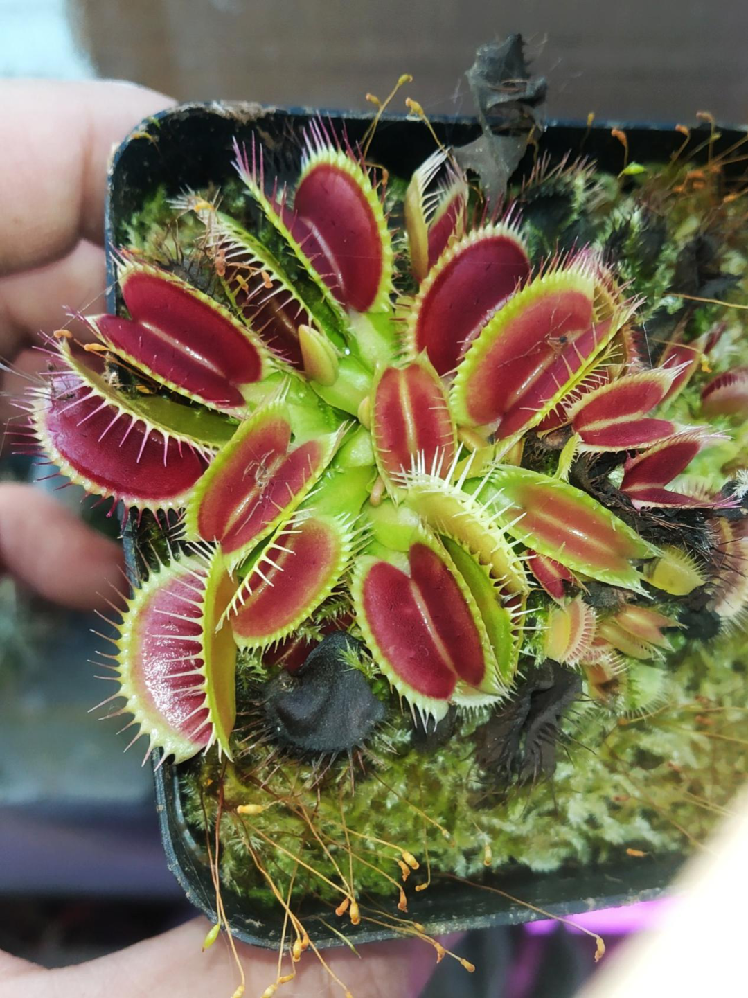 说它们挑食,主要是指食物的大小上。例如一株小小的捕蝇草,猎物太大它夹不住,就很容易逃脱,自然也就吃不到。如果人为强行投喂过大的食物,例如一块儿虾肉,就会造成叶片腐烂。
