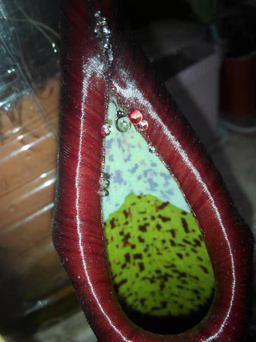 问题来了,既然瓶盖不是用来盖住瓶子防止猎物逃出,要瓶盖有什么用呢?目前认为瓶盖可能更多是用来吸引猎物的——有的瓶盖上具有彩色和透明的斑纹,有的瓶盖上还可以分泌糖分,吸引猎物前来取食。此外,瓶盖还可以发挥遮挡雨水的作用,防止瓶中储水过多重量过大,引起瓶子倾倒。