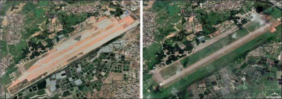 惠安军用机场扩建中(图左)与扩建前(图右) 图源Google Earth据报道,台湾“国防安全研究院国防战略与资源研究所长”苏紫云声称,福建龙田、惠安机场处于解放军的靠海“拦截地带”,经修缮后可以增强解放军的防空能力;翻修后的长跑道可供运-20加油机起降,这将大幅度增加解放军战机的航程。此外,运8和运9反潜侦察机也可以使用这两座机场。他形容称,两座机场翻修,让解放军“进可攻,退可守”,整体滞空时间和巡弋密度都得到了提升。