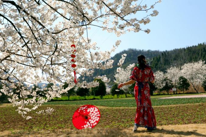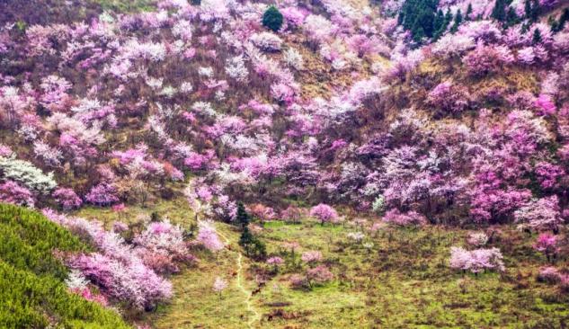 全球80%野生樱花的种源在中国,湖北崇阳县就有10万亩连片的野生樱花林,主要以华中樱为主,樱花谷景区坐落在崇阳县铜钟乡大岭村,被评为湖北省旅游名村。花期:3月初至4月初