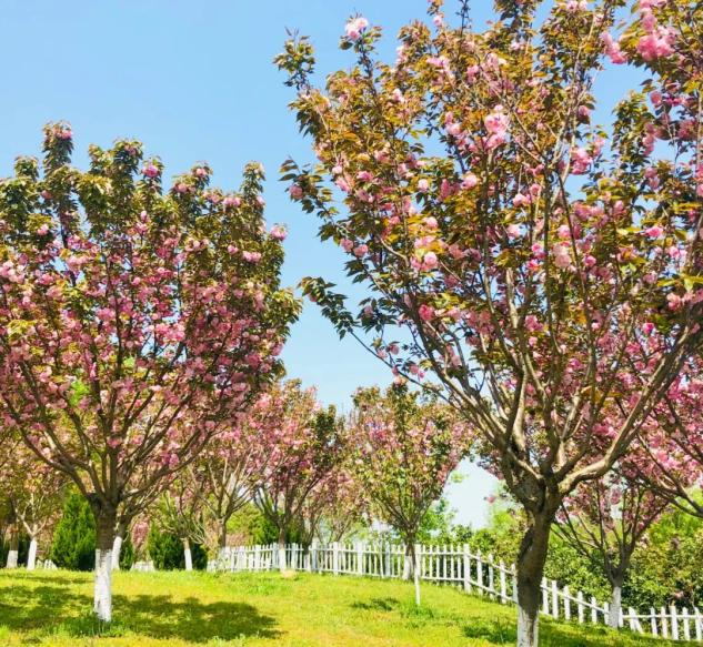 园内培育种植樱花数量大约32700余棵。园区内种植多品种樱花,如中国红、染井吉野、日本早樱、中樱、晚樱、台湾牡丹樱、雅樱、红粉佳人樱、八重红垂枝樱、京红早樱、河津樱、横滨绯樱等。早樱、晚樱分不同时段开花,让大家不会错过花期。花期:3月中下旬至4月初