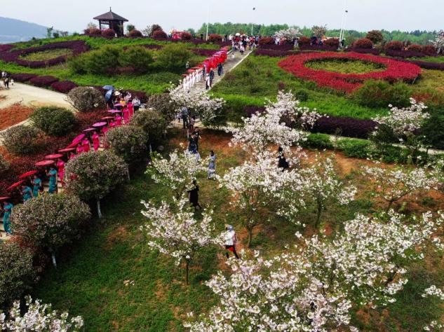 景区内有早樱园、晚樱园约600亩。山花烂漫的季节,穿着汉服置身花海,感受如诗画卷。3月13日,关雎河畔第三届樱花文化节开幕。花期:3月上旬-4月中上旬