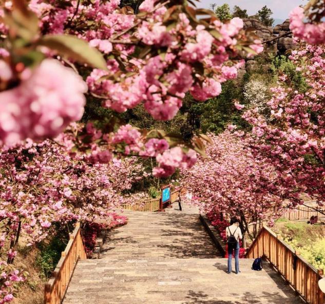 每年樱花季,恩施梭布垭石林旅游区内百亩樱花竞相绽放,樱香弥漫山林,美不胜收!最佳赏樱地点:恩施梭布垭石林景区青龙台+六步关入口百亩樱花基地。花期:4月上旬
