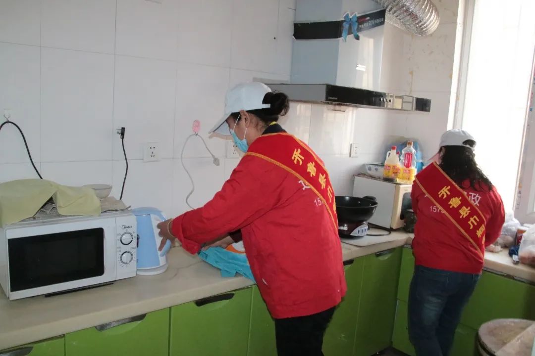 活动现场,志愿者们帮助老人整理家里物品、擦玻璃、清理地板等,还与老人亲切交谈,向老人宣传近期开展的党史教育和党的惠民政策,让老人真切感受到志愿服务的温度。