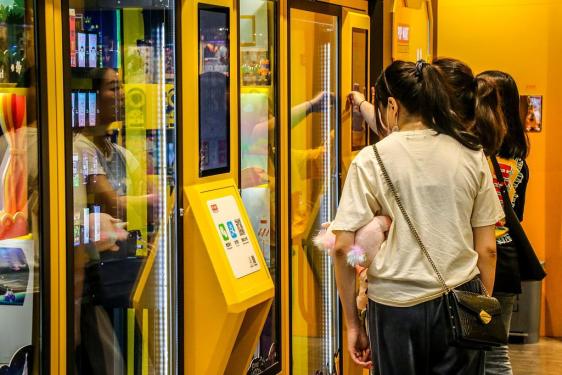 “刚出了一只,那个卖家千恩万谢地买走”。张曼说道,离开商场后两个小时,机器里的盲盒就被买空了。