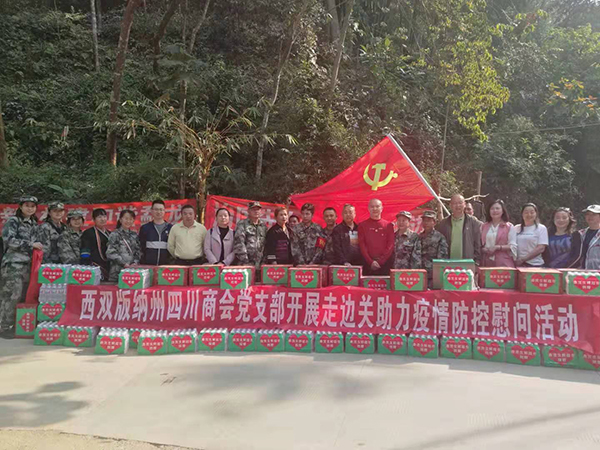 本报讯(民族时报全媒体记者 刘炳金)近日,西双版纳州委统战部联合州工商联、西双版纳州四川商会党支部到景洪市勐龙镇曼戈龙村委会小棵木村疫情防控值守点开展主题党日活动。