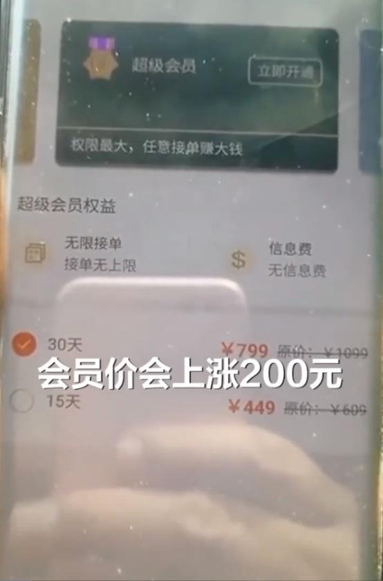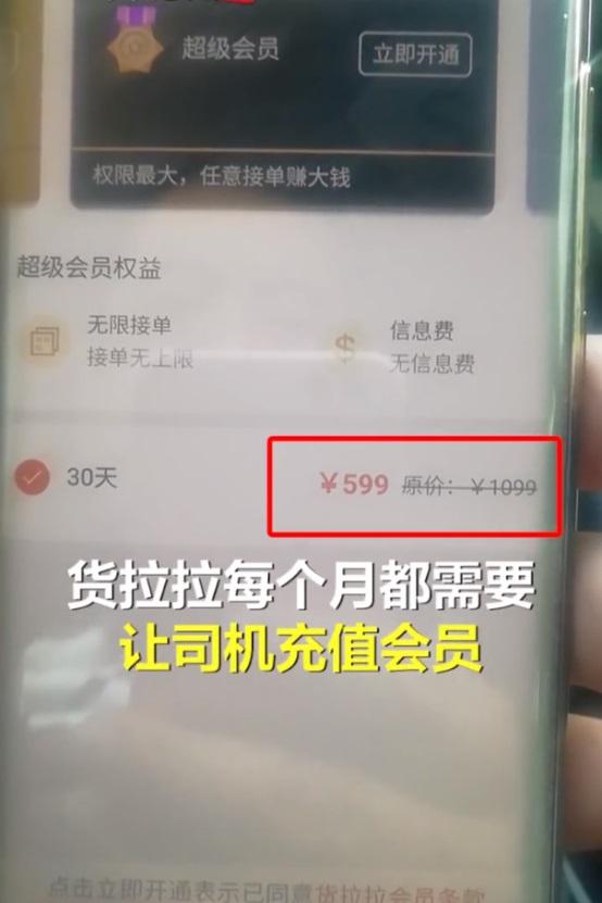 一位长沙地区的货拉拉司机在接受采访时说:“现在(会员费)是涨价了,(超级会员)709元、高级会员539元一个月。超级会员能无限接单,高级会员只能接5单,就是免那个(抽成)费用,如果没有会员的话,它要抽你15%的信息费,超级会员无限接单,不用抽你的信息费,初级会员是首单不抽信息费,299元一个月。单子一出来是周围的人都在抢的,不是说派给你单的,要是说我开个超级会员709元一个月,你每天固定给我单,那还行。”