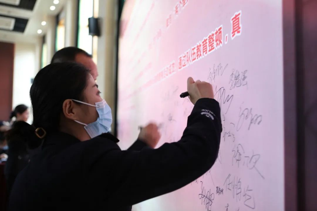 监狱民警代表签订《决心书》开展队伍教育整顿,夯实政治信仰之基、铸造民警忠诚之魂、坚守公正廉洁之本、筑牢拒腐防变之堤。全体民警决心做到: