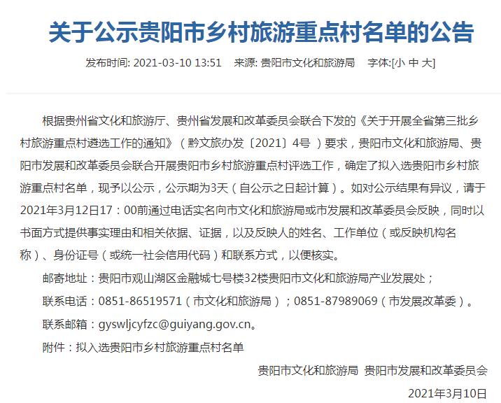 原标题:《关注│21个!贵阳市乡村旅游重点村名单公示中》
