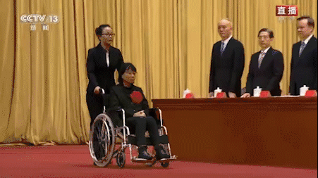 2月25日,全国脱贫攻坚总结表彰大会上,张桂梅乘坐轮椅接受表彰,看得我眼睛都湿润了。