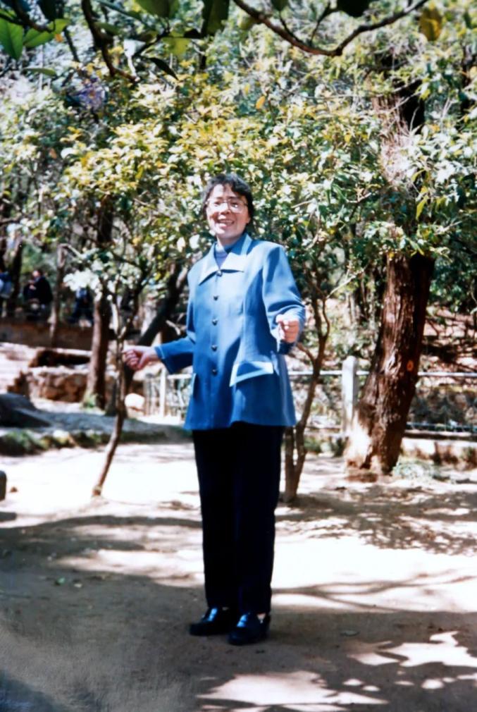1990年,张桂梅在丽江黑龙潭游玩(资料图)。新华网发(华坪县融媒体中心 供图)1990年,张桂梅大学毕业,跟随丈夫到大理市喜洲一中工作。丈夫当了校长,张桂梅当了老师。