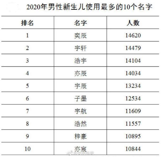 “奕辰”“宇轩”“浩宇”“亦辰”“宇辰”