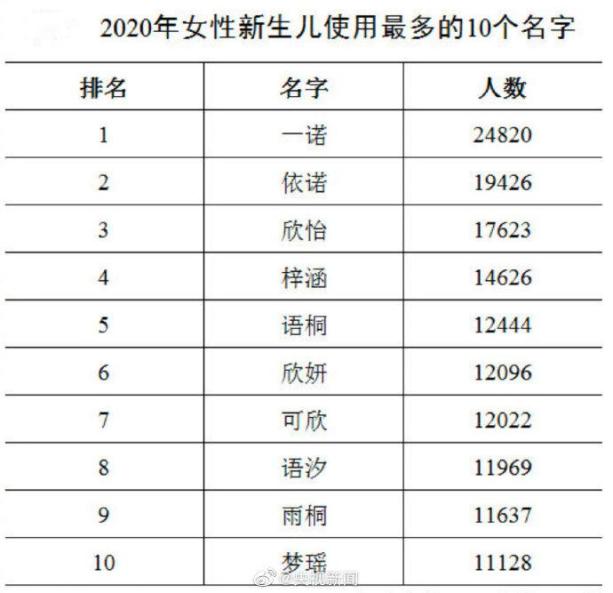 公安部发布了2020年全国姓名报告,