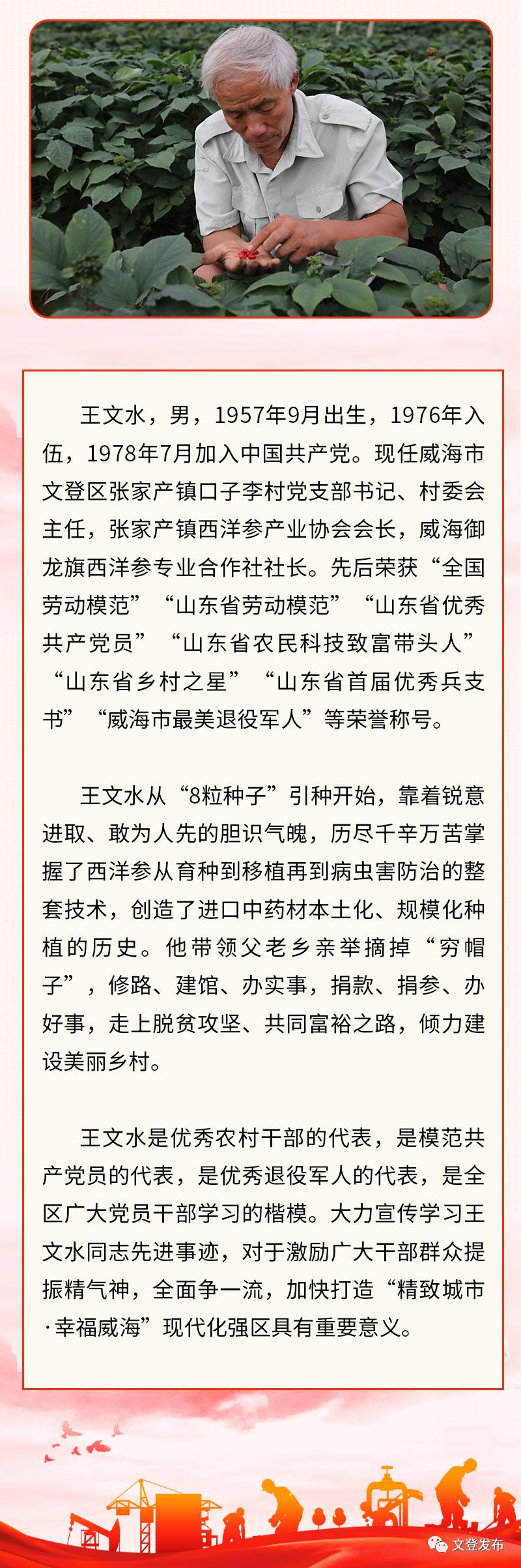 无私帮助 倾囊相授最早认识王文水,是在1980年的3月份。那天文登供销社在口子李村召开黄芪种植现场会,育种专家王继振老师给我们做介绍,一个小青年做示范,这个小青年就是王文水,他刚退伍回乡,给王继振当助手。我认真听、仔细记,回去后村里同意拿出3亩地种黄芪。