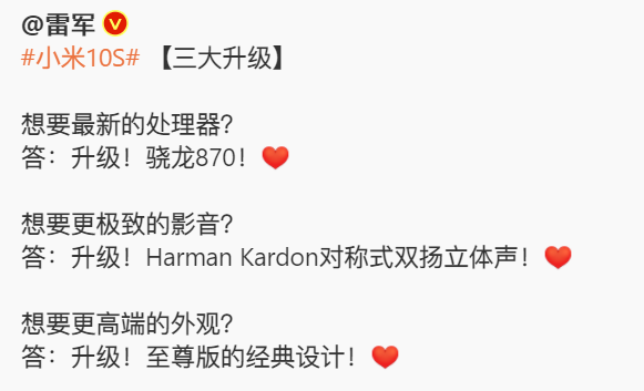 但是,小米10S的发布,也体现了小米品牌在产品品牌建设上的缺陷: