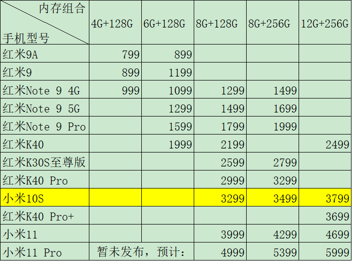 在小米10S发布前,在3000-4000这个价位,红米-小米产品体系内,仅有一个内存组合的红米K40 Pro、一个内存组合的红米K40 Pro+和一个内存组合的小米11,这对于这一主流的销售主力区间,小米集团的产品体系,是没有多大的竞争力的,小米10S以升级后的小米10版本,更好的配置、更低的价格,有力的填补了这一价格区间的空白,而且是极具竞争力的产品。
